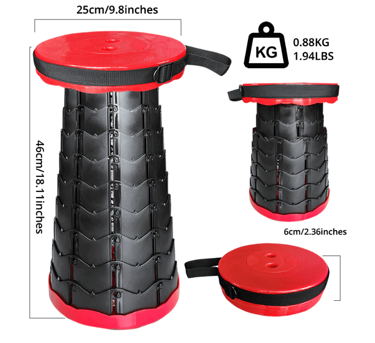- Mugav hoiustamine – kompaktne suurus võtab vähe ruumi; Hoidke seda taburet hõlpsasti kohvrites, seljakottides, käekottides, istmete all ja kitsastes kohtades.